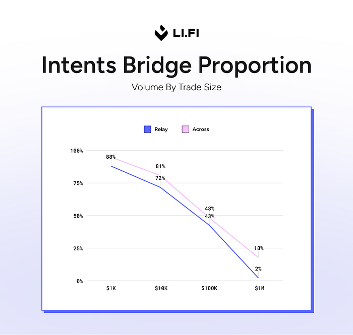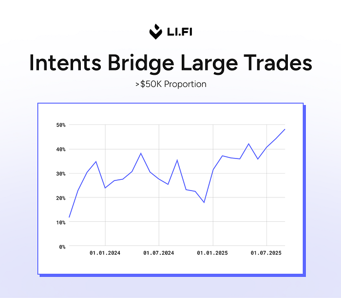 更有趣的是,基于 intent 的解决方案也开始赢得大额订单。起初,intents 被归类为零售渠道——廉价、快速的 50-1000 美元转账。这种观点现在已经过时了。数据显示,这些系统也在赢得大额订单,通常为 50,000 美元或更多。