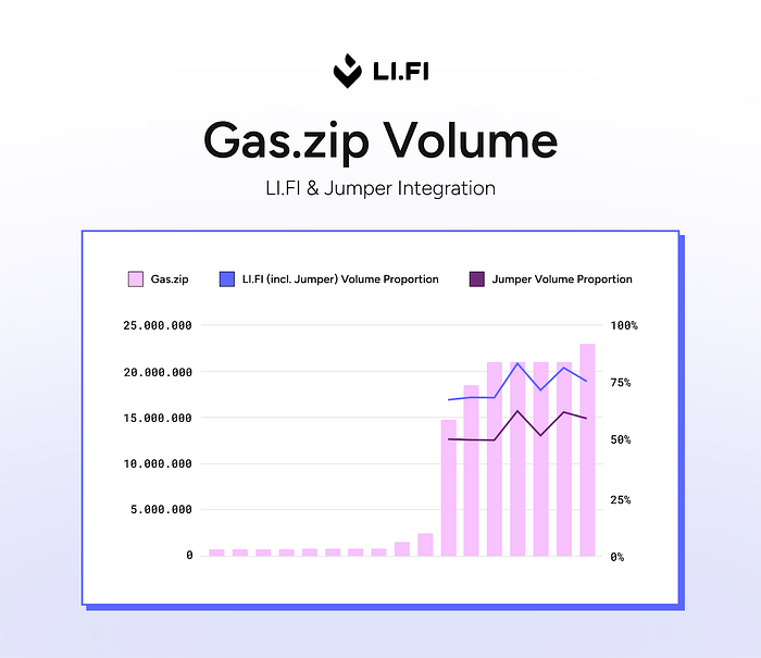 Gas.Zip 在与其 LI.FI 集成后交易量激增就很好地说明了这一点,LI.FI 集成立即为它提供了跨 Jumper 和领先钱包等合作伙伴的分发渠道。