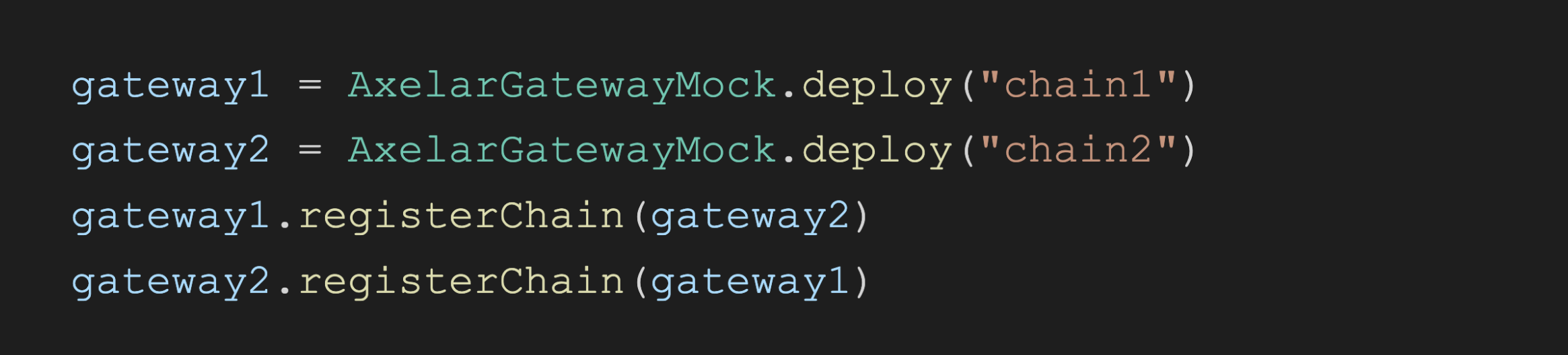 首先,必须部署 Axelar Gateways 并且每个网关必须注册其他网关。
