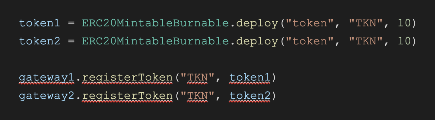当使用 tokens(_sendToken_和callContractWithToken 函数)时,还必须为每个 Axelar Gateway 部署一个 token 实例,并在各自的网关注册这些实例。