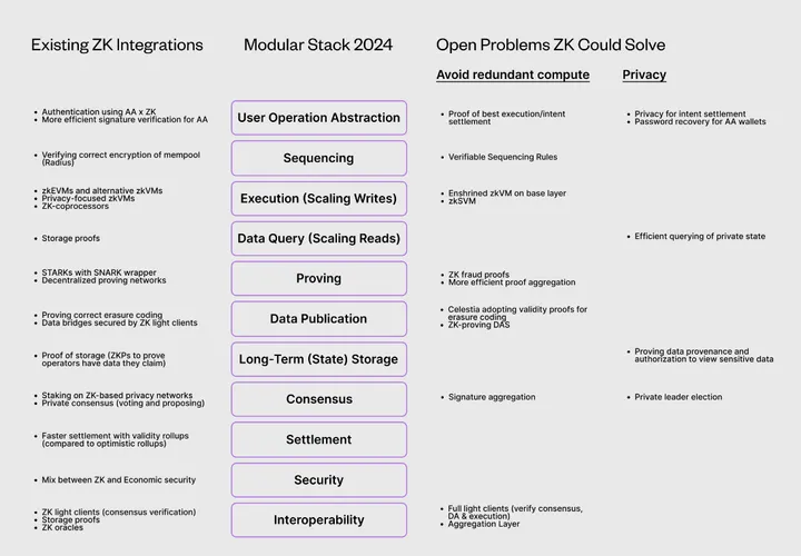 Equilibrium Labs 的 分析 “ZK 会吞噬模块化堆栈吗?” 提供了对模块化堆栈潜力的精彩概述,重点介绍了现有的集成和突出了 ZK 技术未来可以解决的问题。