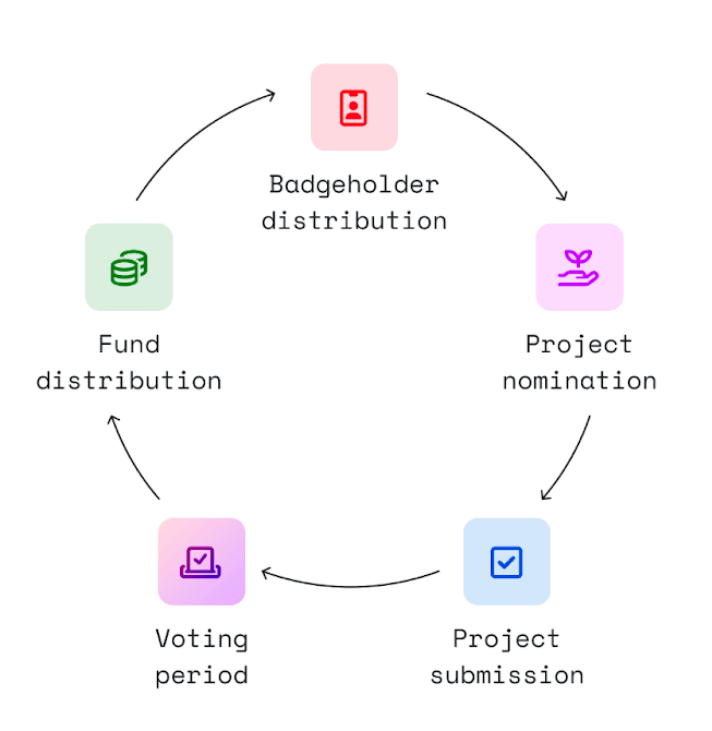 徽章持有者选择 - 徽章持有者有权向项目分配 OP 代币。他们在运行有效的 RetroPGF 轮次中发挥着重要作用。对于 RetroPGF Round 2,徽章持有者是根据四个不同的标准选择的。