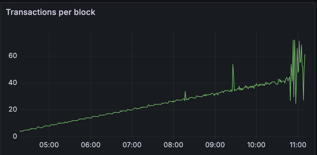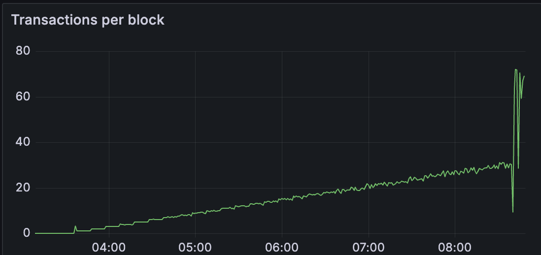 一件有趣的事情是,当网络健康时,上述运行时超过 4-6 秒。 我们需要确定多长的运行时对于正确的区块传播是安全的,以及其他因素如何与此时间相互作用。