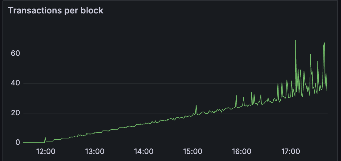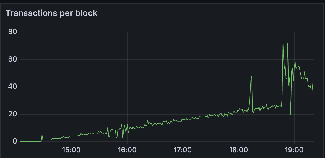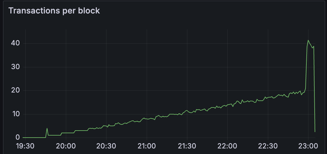 对于 grandine,我们观察到区块时间保持健康,直到大约有 20 个 blobs/区块。