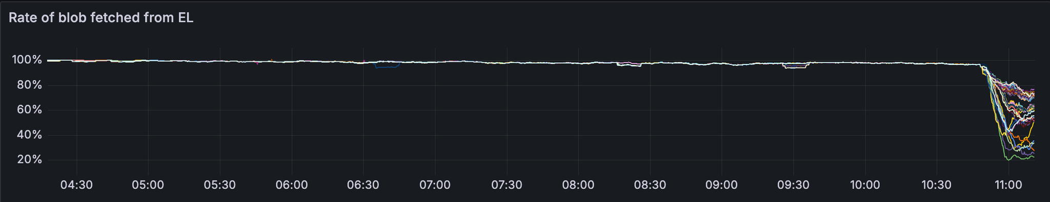 了解降低的 getBlobs 命中率是否会导致网络故障,或者网络故障是否会导致 getBlobs 命中率追溯性下降也很重要。