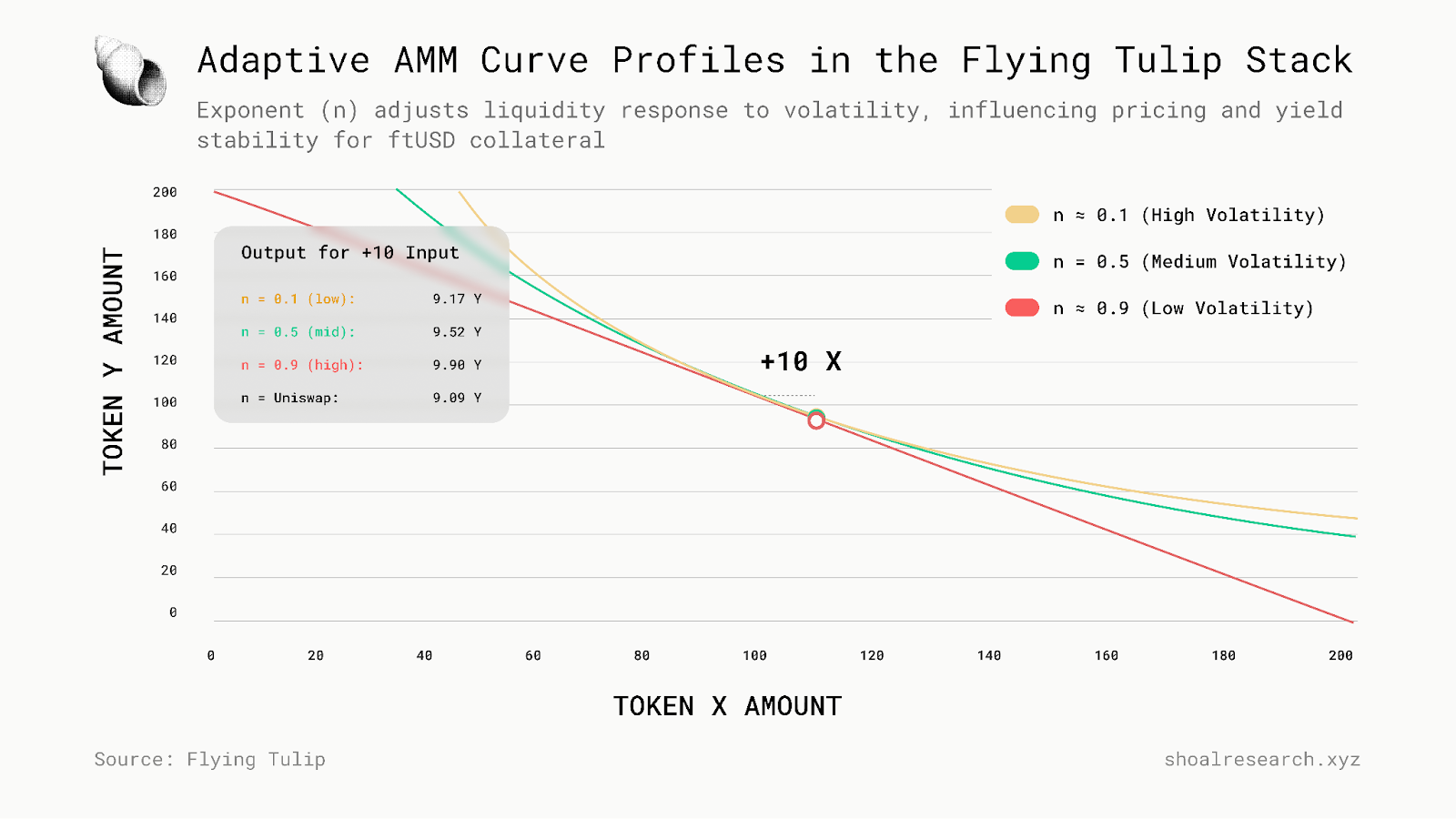 Flying Tulip 的协议研究表明,AMM 曲率会动态地调整到市场波动性,如上图所示。