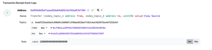topics[1] = from 地址,填充为 32 字节:0x7f8b1c…fd0c = 发送者。