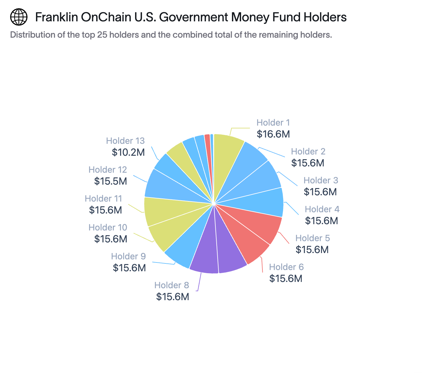 Ondo Finance 的主导地位反映了其作为初始锚定投资者的角色,使用 FDIT 作为其 OUSG 收益生成 Token 的储备资产。有限的持有者数量对于新推出的机构 Token 化产品来说很典型。