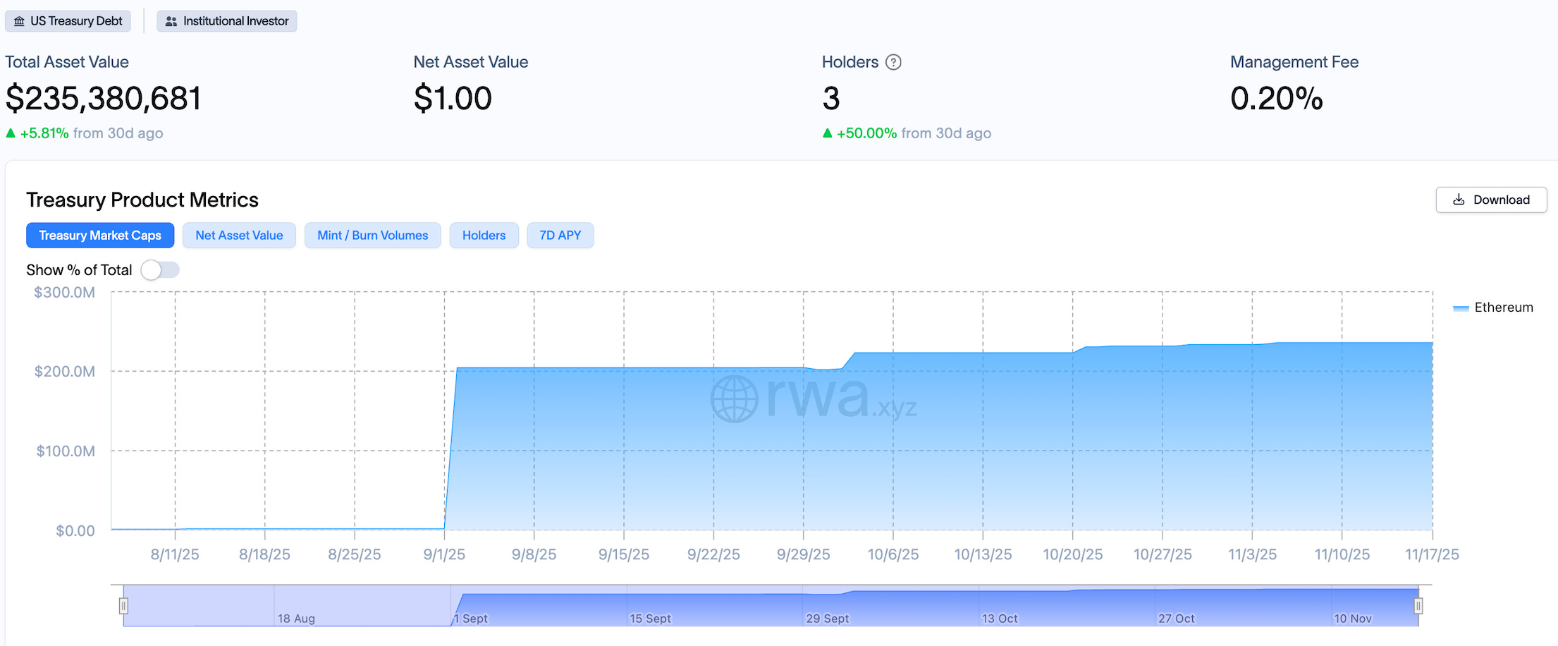 投资者可以通过 Securitize Markets 订阅以访问该基金,该基金将其 100% 的资产投资于现金、美国国库券和回购协议。
