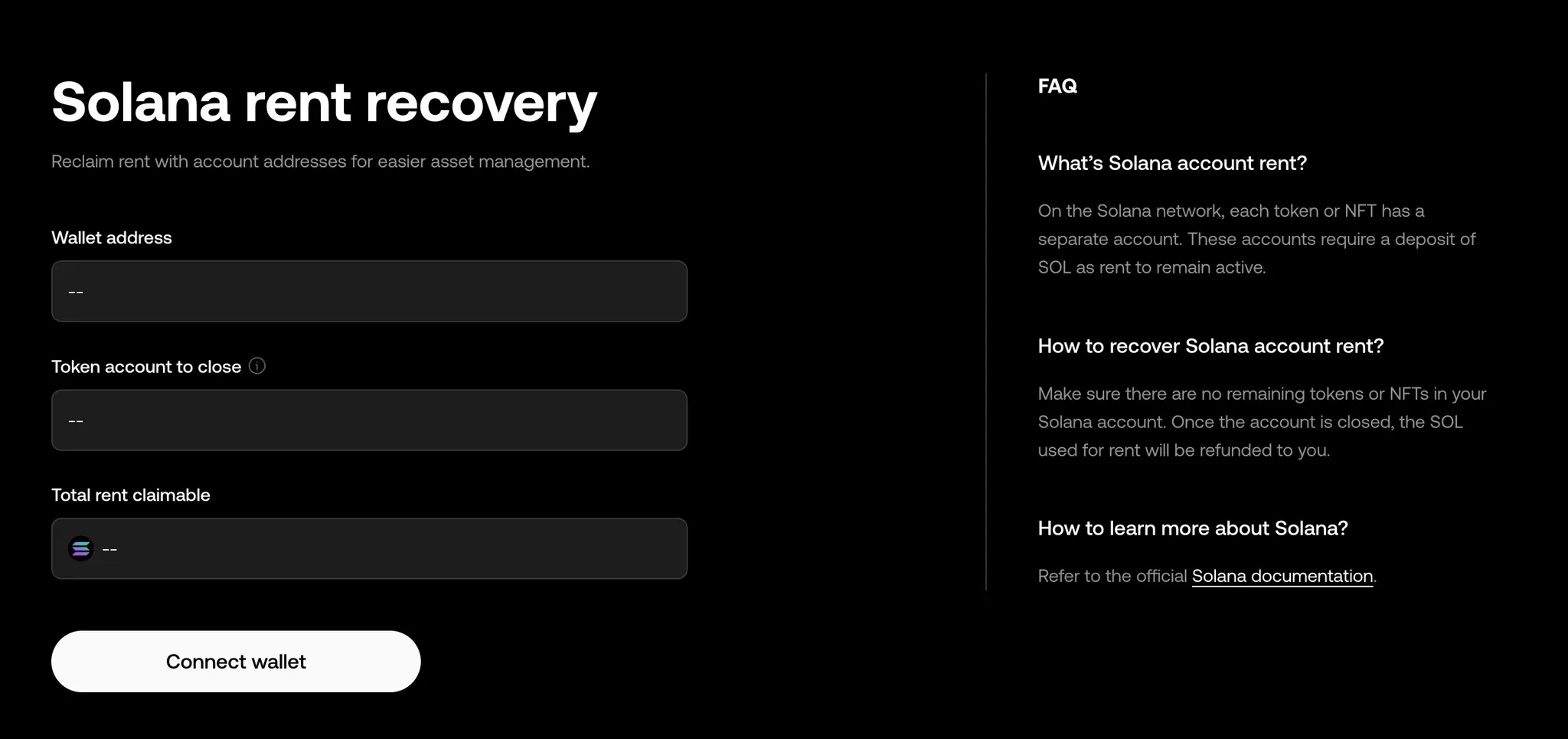 在协议中,DApp 成功的一种常见模式是涌现出消除痛苦 UX 的应用程序。Solana 的租金模型恰恰创造了这种机会。用户可以通过关闭账户来收回他们存入的 SOL,但许多人首先不了解租金的概念,即使那些知道的人也常常发现认领过程很不方便。