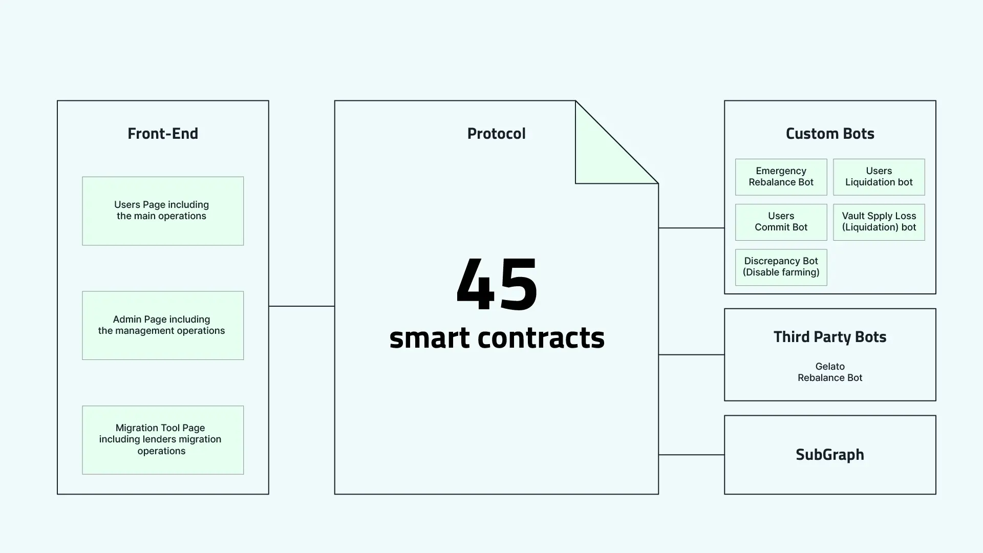作为基础技术合作伙伴,LimeChain 从概念到发布设计了整个智能合约生态系统和后端自动化。这包括开发超过 40 个智能合约、用于头寸管理的自动 bot 以及将用户贷款置于自动驾驶状态所需的所有基础设施。