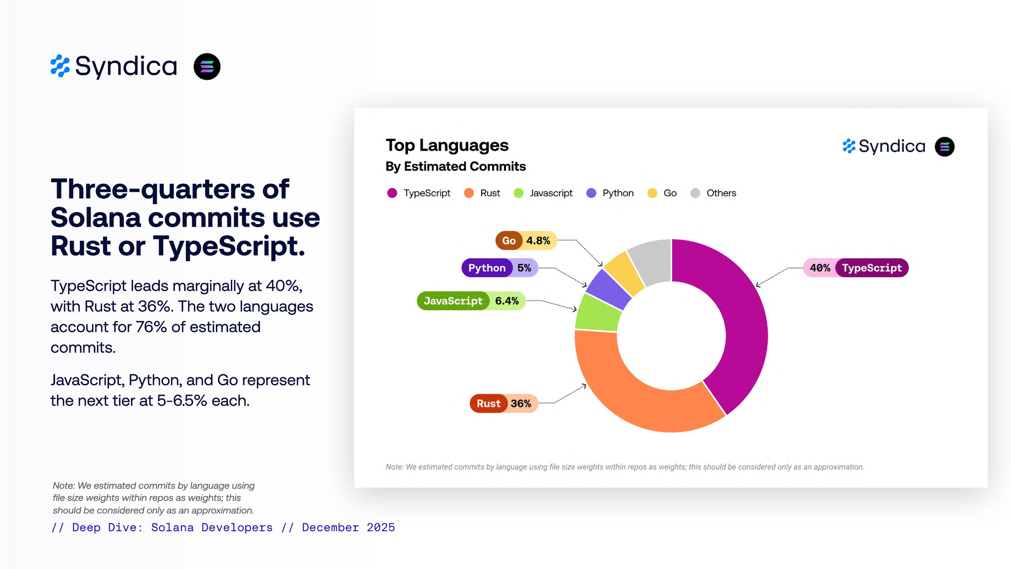 Solana 三分之二的 commits 使用 Rust 或 TypeScript。