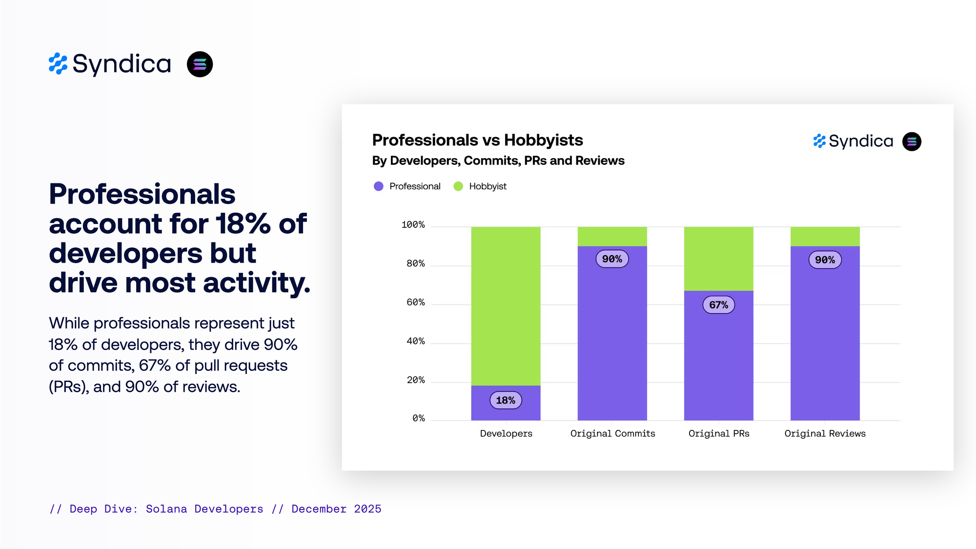 专业人士占开发者的 18%,但驱动了大部分活动。