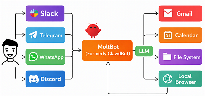 OpenClaw 和 MoltBot 的兴起表明,创建智能 Agent 所需的技能水平已降至几乎为零,几乎任何用户都有机会以极低的技术技能创建复杂的 Agentic AI 基础设施。事实上,在几分钟内,用户就可以设置好 Agentic AI,将其通信渠道(例如 Telegram)与他们的 LLM Agent(例如 ChatGPT)以及他们的目标系统(例如他们的本地文件系统)链接起来 —— 如图 3。