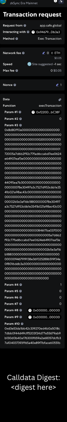 对于普通交易,我们建议将 calldata digest 放置在钱包界面的底部。