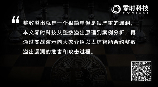 整数溢出就是一个很简单但是很严重的漏洞,本文零时科技从整数溢出原理到案例分析,再通过实战演示向大家介绍以太坊智能合约整数溢出漏洞的危害和攻击过程。