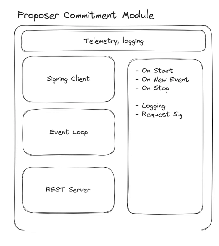 通过 Commit Boost 的社区构建模块,提议者可以创建提交并设置包含预确认逻辑的提交协议逻辑。