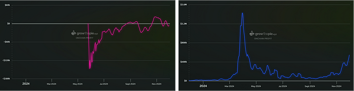 Taiko 的净利润(左),base的净利润(右)(来源:growthepie