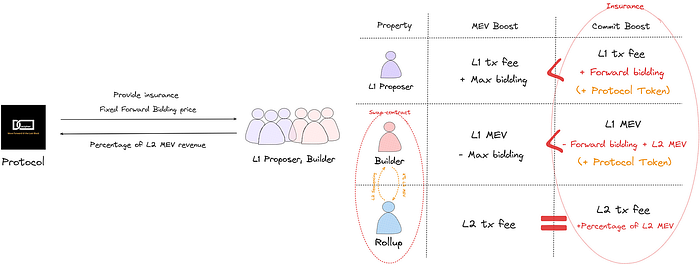 通过这种结构,该协议可以在 L2 MEV 的新市场中持续产生收入,而 L1 proposer 和 builder 可以获得比现有 MEV-Boost 市场更高、更稳定的利润——而无需承担与预测未来区块价格相关的风险。
