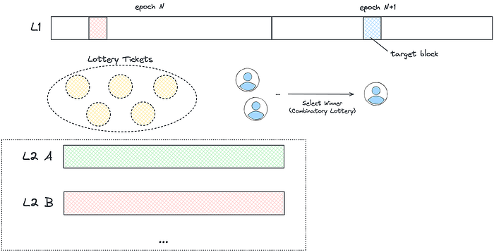 接下来,在获胜集中的捆绑包的票证持有者中举行彩票,以选择将执行排序的实际排序器。这不仅仅是选择出价最高者的问题;它的目的是防止拥有大量资金的实体垄断连续 epoch 的排序权,从而确保一定程度的去中心化。此过程称为组合彩票