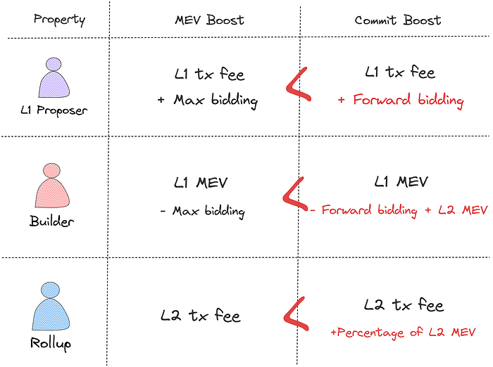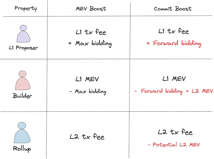 实际上,基于 Commit-Boost 的衍生品市场在 MEV-Boost 中创建了一个新的收入来源——L2 MEV,这意味着总体市场收入必然会增加。但是,尽管总体收入在增加,但每个参与者感知的风险可以概括如下: