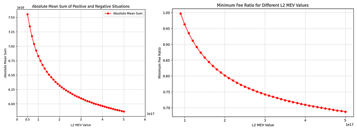 基于提取的平均 L2 MEV 的平均保险金(左)和协议可持续性的最低费用收取比率(右)(来源:自行制作)
