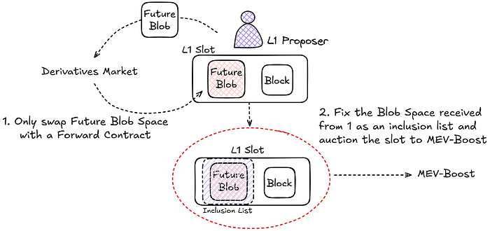 1. L1 proposer 仅在衍生品市场中出售 Blob 空间(通过远期合约)。