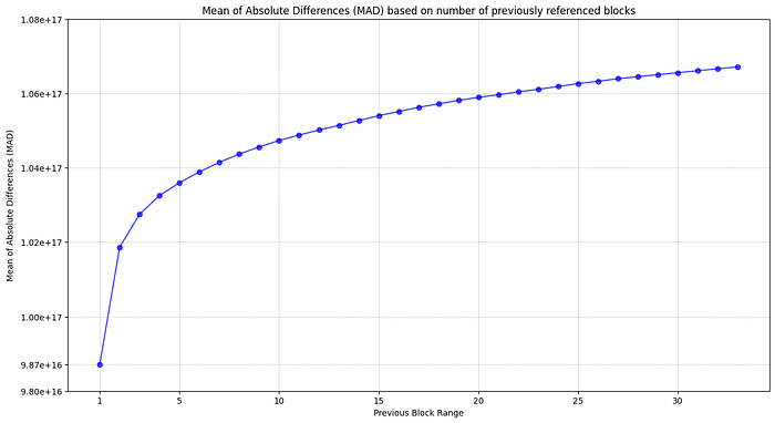 这些统计数据表明,异常值——其价值与平均值显着偏离的区块——非常频繁地出现,并且当这些异常值出现时,实际区块价值可能远大于平均值或中位数。此外,以下图表进一步证明了这些异常值的不可预测性: