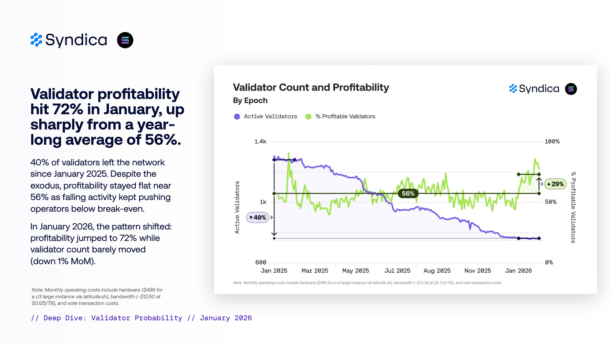 1 月份 validator 盈利能力达到 72%,从长达一年的 56% 平均水平急剧上升。