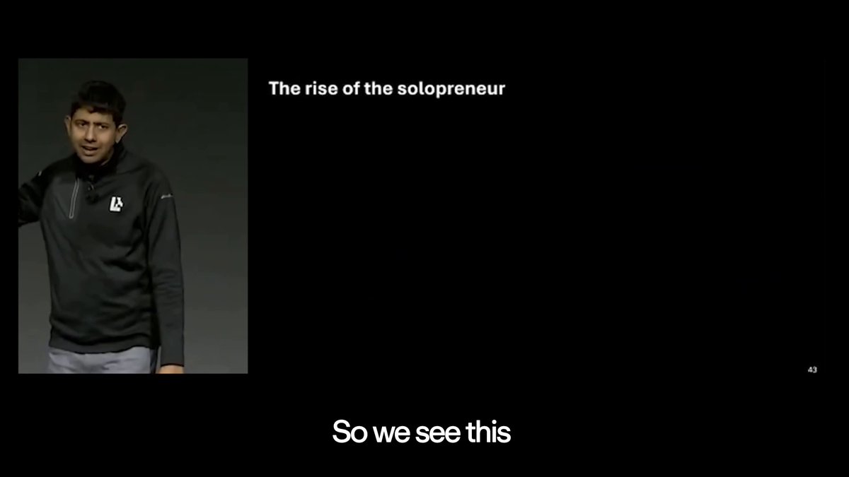 我们已经在这个世界上看到了个体创业者(Solopreneur)崛起的早期前兆。一个人配备了强大的 AI 工具,现在可以以几年前难以想象的速度构建产品和业务。创建软件的成本正在迅速下降,个人的生产能力也随之提高。