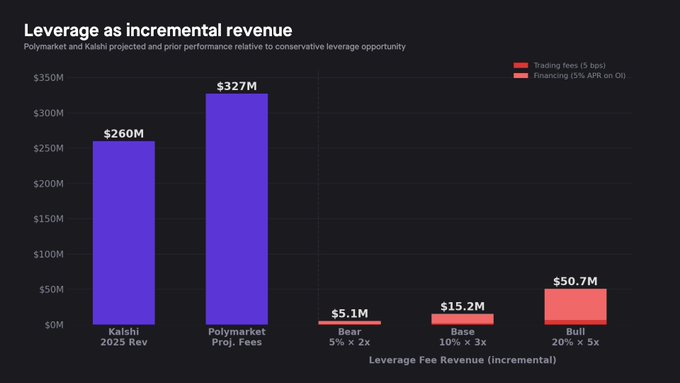 这是一个关于预测市场杠杆提供的全景报告 —— 涵盖了当今正在构建的模型、它们的工作原理以及它们在何处失效。在本文中,我们讨论了市场规模、费用收入机会,并最后对交易场所架构进行了总结。