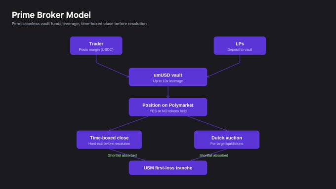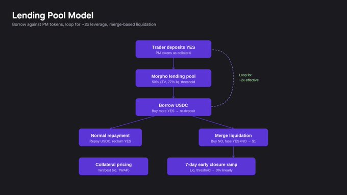 主经纪商模型与借贷池方法在一个重要方面有所不同:杠杆由交易场所原生管理,而不是通过池化信贷金库资助。该平台不是将预测市场份额视为社会化借贷池内的抵押品,而是直接监控账户健康状况,在交易场所级别设置风险限制,并在头寸陷入困境时主动管理清算。